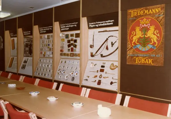 Foto fra Tiedemanns reklame- og tobakksmuseum. Samlingen består av gjenstander, fotografier og arkivalia knyttet til J. L. Tiedemanns Tobaksfabrik (etablert 1778). Fabrikken var en sentral og ledende aktør innen nærings- og nytelsesmiddelindustrien, og utgjør et langt og viktig kapittel i norsk industrihistorie. Tiedemanns Tobaksfabrik la ned produksjonen i 2008, etter 230 års virksomhet. Norsk Folkemuseum overtok Tiedemanns reklame- og tobakksmuseum i 2010.