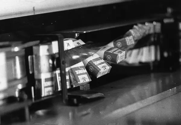 Pakkemaskin for sigaretter på Tiedemanns fabrikk på Hovin.