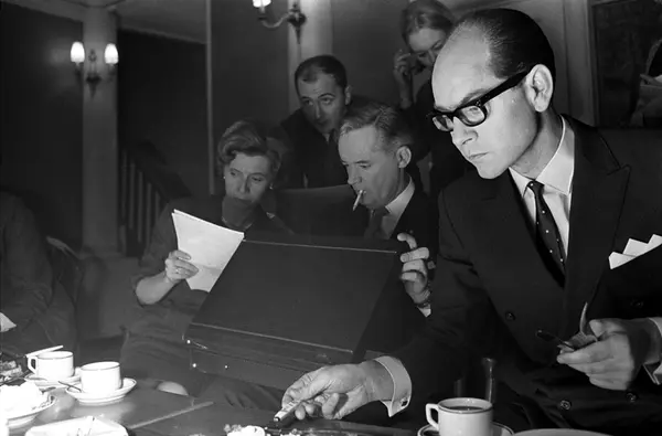 NRKs fjernsynsprogram "Åpen post" 14. november 1968, som ble spilt inn i Centralteatret. Fra venstre Elisabeth Schweigaard Selmer, Kjell Arnljot Wig og Per Øivind Heradstveit i en pause mellom opptak.