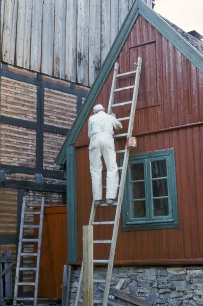 Maling av husvegg. Forstadshus fra Flisberget 2 på Enerhaugen.