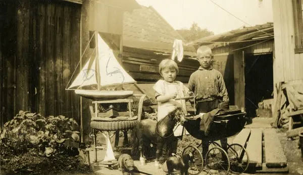 Barn leker på gårdsplass på Enerhaugen, 4.juli 1924.