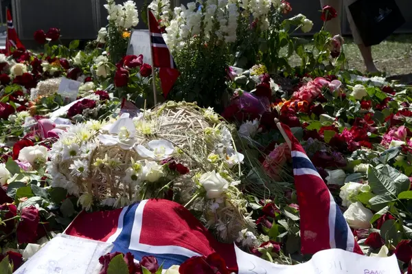 Bildet er del av en serie som følger opp fotodokumentasjonen som ble gjort av Norsk Folkemuseums fotograf, Anne-Lise Reinsfelt, i etterkant av terrorhandlingene i Oslo og på Utøya 22. juli 2011. Hennes bildeserie "Sorg i det offentlige rom" viser mangfoldet av blomster, lys, dikt, bilder, gjenstander og hilsener som folk la ut i Oslos gater. Dette bildet er tatt i forbindelse med ettårsmarkeringen for disse hendelsene.