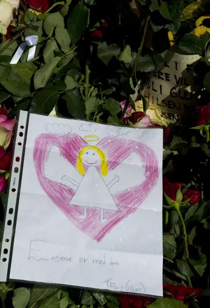 Bildet er del av en serie som følger opp fotodokumentasjonen som ble gjort av Norsk Folkemuseums fotograf, Anne-Lise Reinsfelt, i etterkant av terrorhandlingene i Oslo og på Utøya 22. juli 2011. Hennes bildeserie "Sorg i det offentlige rom" viser mangfoldet av blomster, lys, dikt, bilder, gjenstander og hilsener som folk la ut i Oslos gater. Dette bildet er tatt i forbindelse med ettårsmarkeringen for disse hendelsene.