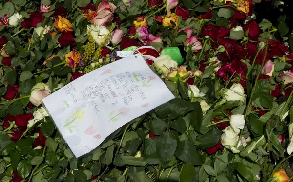 Bildet er del av en serie som følger opp fotodokumentasjonen som ble gjort av Norsk Folkemuseums fotograf, Anne-Lise Reinsfelt, i etterkant av terrorhandlingene i Oslo og på Utøya 22. juli 2011. Hennes bildeserie "Sorg i det offentlige rom" viser mangfoldet av blomster, lys, dikt, bilder, gjenstander og hilsener som folk la ut i Oslos gater. Dette bildet er tatt i forbindelse med ettårsmarkeringen for disse hendelsene.