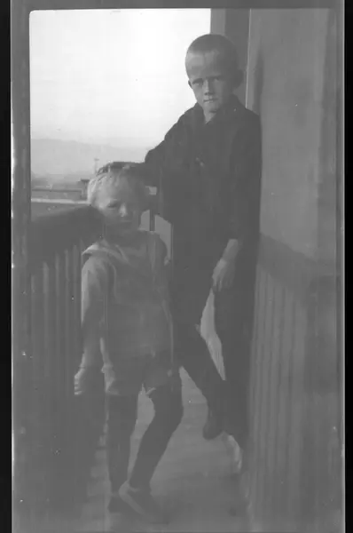 Fetterne Julius og Bjarne H. Sundt poserer i Thomas Heftyes gate 42E i 1920.