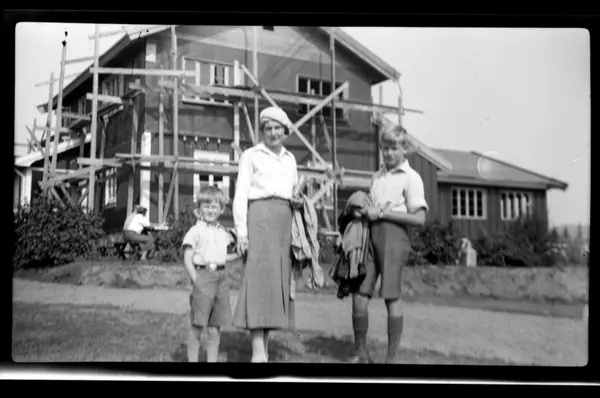 Hilda Sundt med sønnene Lars Peter og Rolf jr., Ullevålseter. Fotografert 1935.