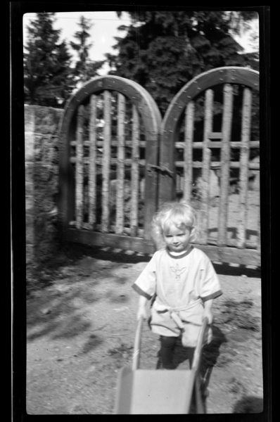 Rolf Sundt jr. foran porten på Villa Knyggen. Fotografert 1923.