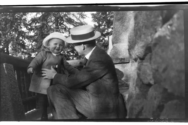Rolf Sundt sr. md sin sønn Julius, Villa Knyggen. Fotografert 1919.