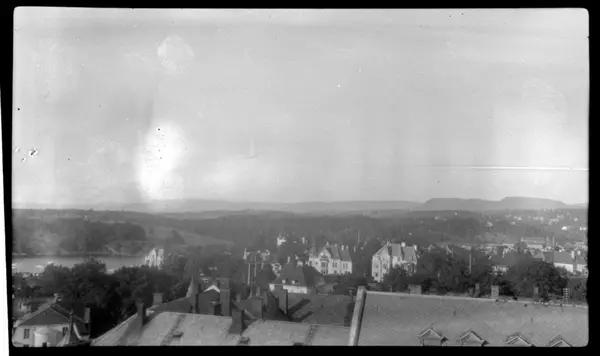 Utsikt vestover mot Bygdøy fra Thomas Heftyes gate 42, Oslo. Fotografert 1925.
