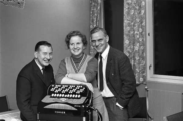 Tre glade gjøglere som skal ut på turné til sjøfolkene. Fra venstre: John Fjeldbu, Birgitte Grimstad og Rolf Søder.