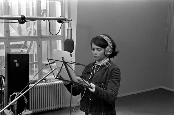 Wenche Myhre under innspilling av plata "Love a-go-go". Plata blir spilt inn hos Roger Arnhoff. Her er Wenche i platestudio.