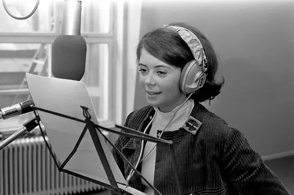 Wenche Myhre under innspilling av plata "Love a-go-go". Plata blir spilt inn hos Roger Arnhoff. Her er Wenche i platestudio.
