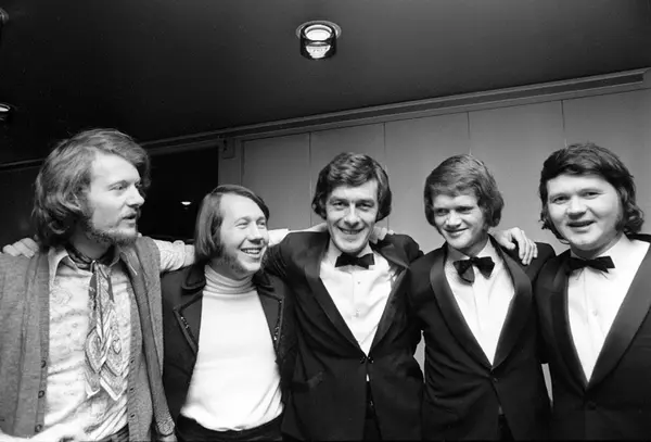 Ny revy på Chat Noir "Show før, jo heller" med Wenche Myhre og Dizzie Tunes. Her fra premierefesten. Fra venstre Øystein Sunde, Tore Torell, Jørg Fr. Ellertsen, Yngvar Numme og Finn Eriksen.