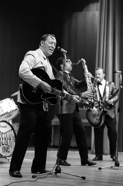 Konsert med rockens konge "Bill Haley and His Comets" i Folkets Hus i Oslo. Bill nærmest med gitar.