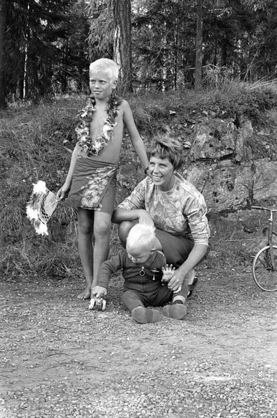 Familien Damman har kommet hjem etter å ha bodd sju måneder på øya Savali i Polynesia. Her er kona Ragnhild sammen med to av guttene, Rein og Jaran.