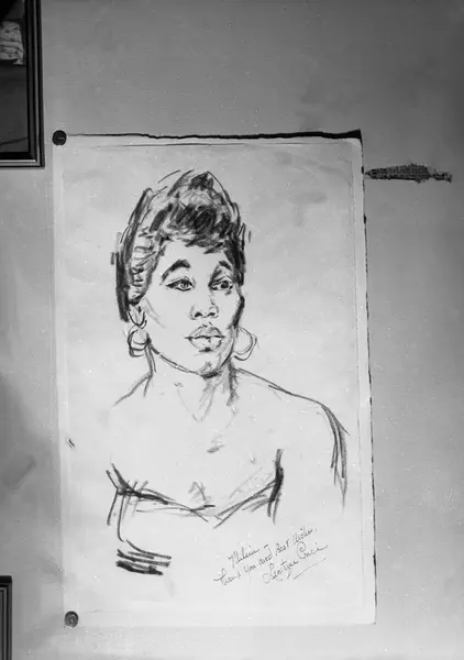 Musikalen "Porgy and Bess" er satt opp på Folketeatret i Oslo. Avfotograferte tegninger av skuespillerne utført av antatt Martin Crossman i teatret. Denne tegningen har en hilsen fra Leontyne Price.