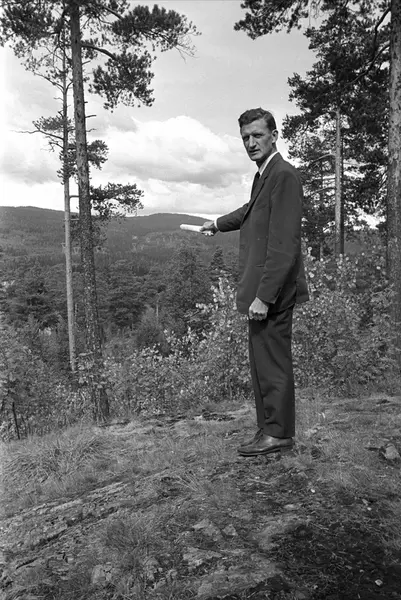Riksarkivet, Oslo, Folke Bernadottes vei 21, august 1966, riksarkivar Mannsåker anviser plass for nytt Riksarkiv.