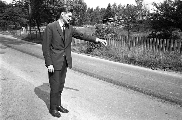 Riksarkivet, Oslo, Folke Bernadottes vei 21, august 1966, riksarkivar Mansåker peker ut adkomst til det nye Riksarkivet.