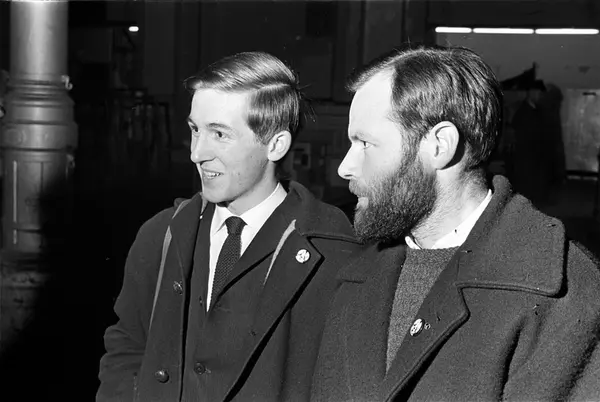 Engelskmenn som har demonstrert i Moskva, antatt Oslo, 07.11.1962. Bryson Sneddeon og Jean Neveu.