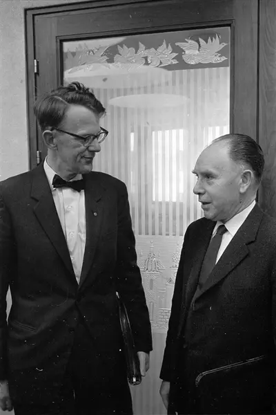 Kongress for fylkesleger og fylkeshelsesøstre, antatt Oslo, 21.03.1963. ,antatt Oslo, 21.03.1963. Fylkeslege Gustav Vig til venstre.