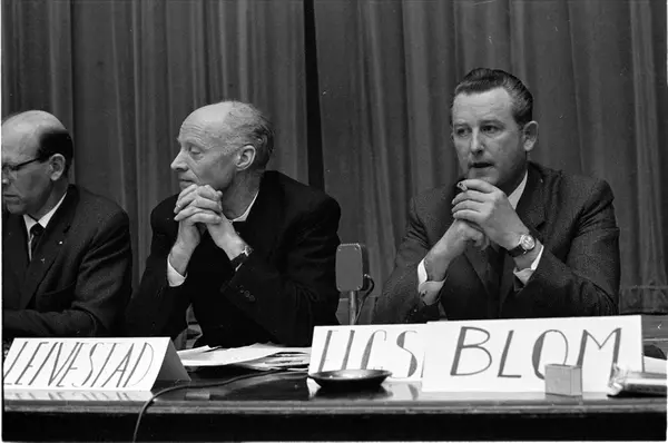 Promillediskusjon i Motorførernes Avholdsforbund. "Ingeniørenes hus", Oslo, 12.03.1963. Til høyre politifullmektig Elg Elgesen.