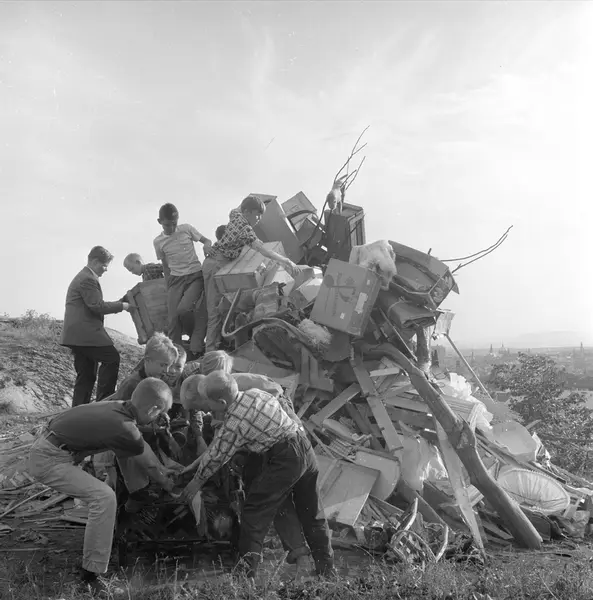 St. Hansbål, ant. Oslo 1960. Barn som lager St. Hans bål.