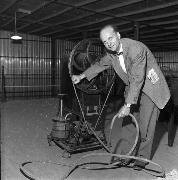 Huk Avenye 35, Oslo, 30.07.1958. Norsk Teknisk Museum i Vikingskipshusets underetasje. Dronning Mauds støvsuger.