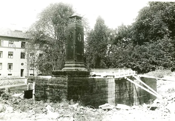 Ventilasjonstårn over underjordisk transformatorstasjon Schivesgte, Frogner, 9. august 1929.