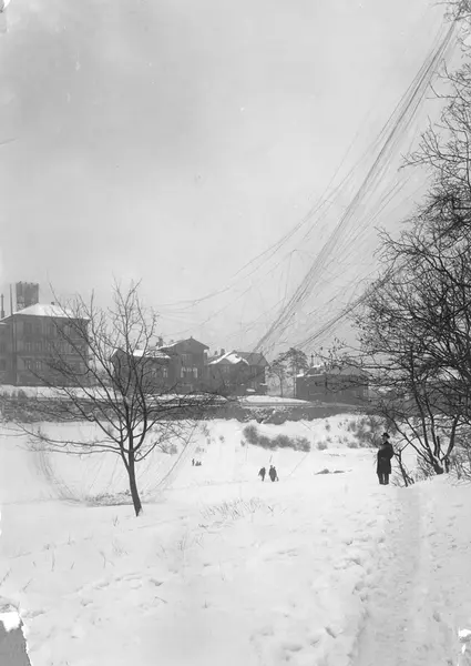 Fotoalbum i stort format hentet fra Teledirektoratets bibliotekmagasin 1993. Tilstanden for innlimte fotografier er varierende, mange er bleket, noen har løsnet og er skadet. Bildetekster og datering finnes på mange av motivene. Ingen navn på fotografer er oppgitt. Negativer til noen av motivene finnes i samlingen TELE.NT1993/4. Det er ikke ført inn kryssreferanser. Bildetekst: Det store snefall 6/3 1901