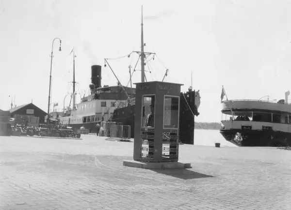 Telefonkiosk ved Akershusbryggen Stettinerskuret