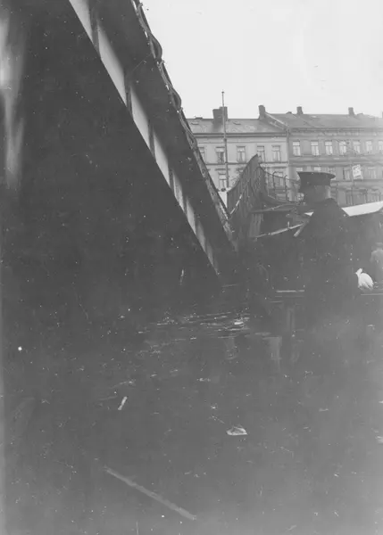 Sammenstyrtning av broen over jernbanen i Oslogate. Nordsiden sett mot byen