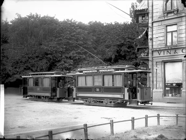 Kristiania Sporveisselskaps vogner 31-58, som gikk i rute fra Munkedamsveien til Grünerløkka. Trikken står i Larssons gate.