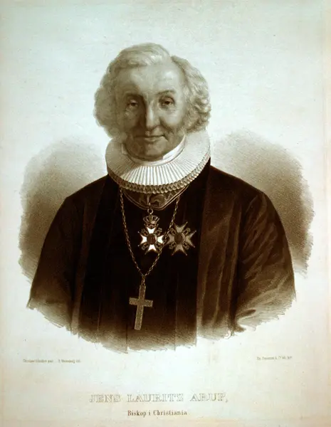 Brystbilde. Ansiktet en face fyldig med lett smil Kinnskjegg . Frisyre med skill i venstre side og fylde ved øre- ne. Bærer prestekjole med pipekrage. På kjolen er festet Storkorset og Kommandørkorset uten bånd. Om halsen henger kors i kjede