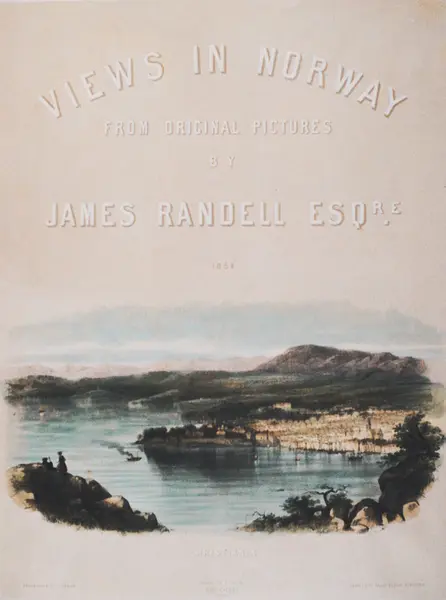 Mappe XV Videre tekst på bildet: COLNAGHI & Co. LONDON. - DRAWN ON STONE BY / EUG CICERI / PARIS. - COUPIL & Co. PARIS BERLIN. NEW-YORK. Bildet er tittelplansje til J. Randell: Views in Norway.