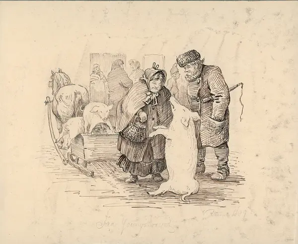 folkeliv, griser, torvhandel, humor,
