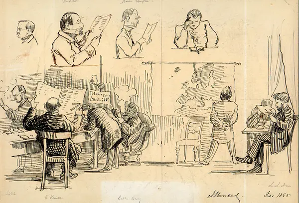 humor, athenæet, lesesal, røykeforbud, sigarrøykning, kart, menn