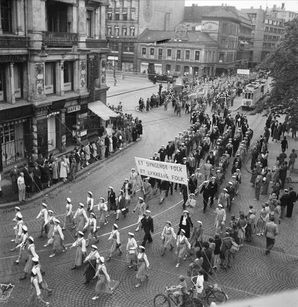 Sangens dag, sangerstevne, opptog, sangere, publikum, bygårder