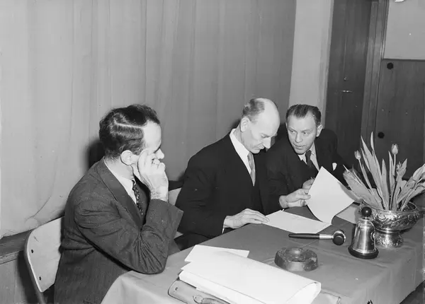 Trygve Bratteli til venstre. Einar Gerhardsen i midten.