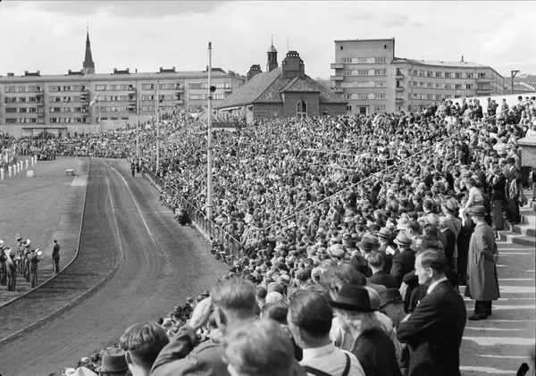 Bislett stadion, Holmenkollstafetten, åpningsseremoni, defilering, deltakere, faner, flagg, publikum