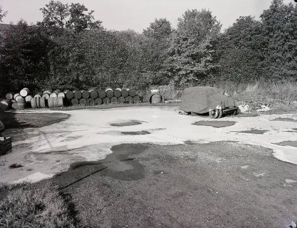 De norske gjær- og spritfabrikker, karbid-oversvømmelse, forurensning, bil, presenning