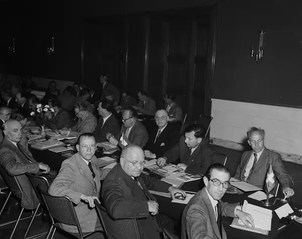 Norges handels- og kontorfunksjonærers forbund, internasjonal kongress, langbord, delegater, menn