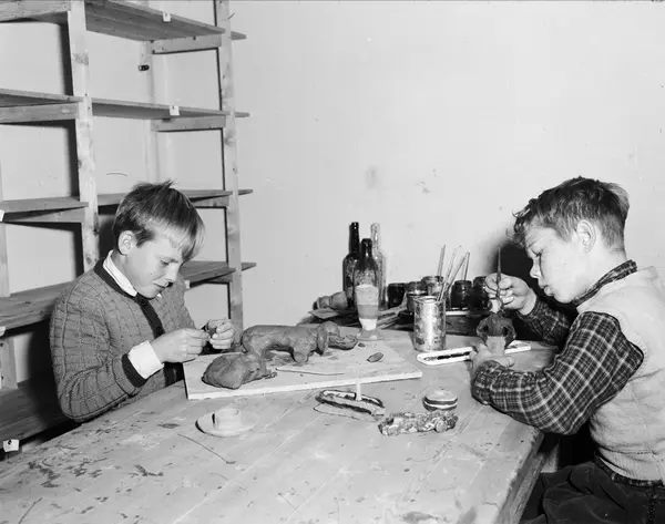 barn på skolen, gutter, forming med kitt