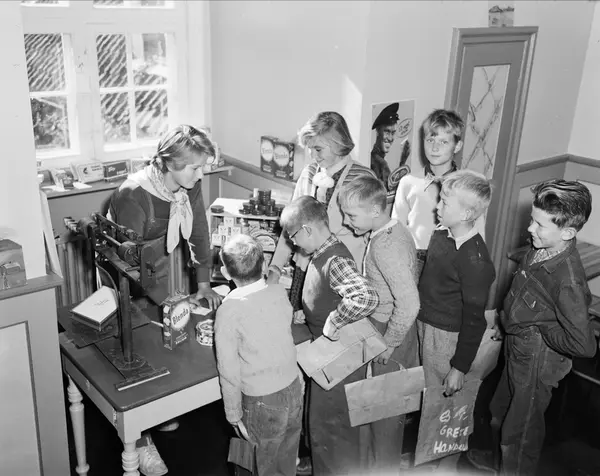 barn på skolen, gutter, jenter, leker butikk