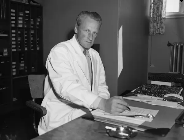Ullevål sykehus, kontor, interiør, mann, overlege, sittende ved skrivebord