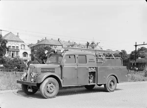Bilens registreringsnummer er A-70219. Vogn nr. 1 - DB 1. Fikk siden et registreringsnummer med F- (Drammen-registrert med Buskerud sin bokstav). Øvre delen av brannbilen ble siden malt hvit.
