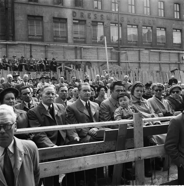 Folkets Hus, nedleggelse av grunnstein, publikum, forretningsgård, Dressmagasinet