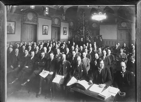 Folkets Hus, interiør, møtelokale, LOs representantskapsmøte, menn, juletre
