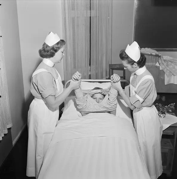 sykepleieundervisning, seng, pasient, sykepleiersker