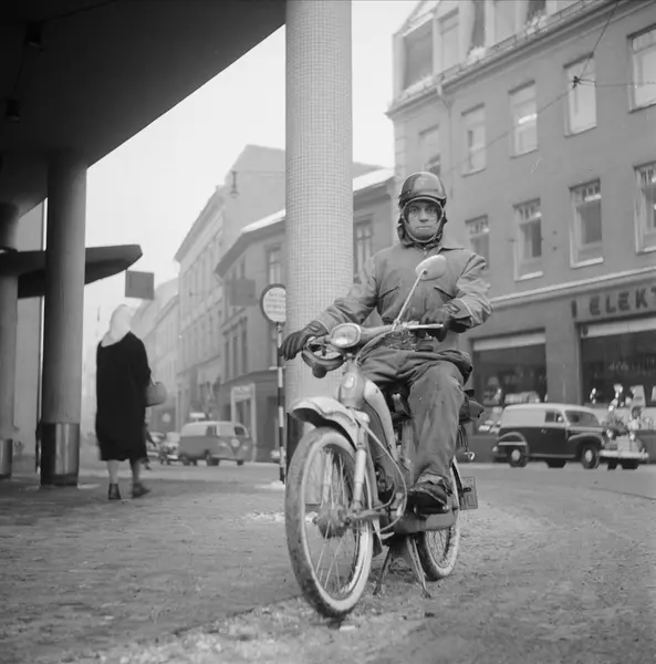 mann, Victoria moped, Stefanhotellet, forretningsgårder
