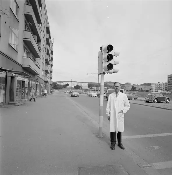 boligblokk, Arthur Gahrs kolonialforretning, Ivar Skalleruds kolonialforretning, eksteriør, mann, gateløp, biler, Kringkastingshuset, Marienlyst skole, boligblokker